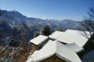 山野小径,青松挺拔,林荫蔽日,问顶云际寺,仙风渺渺,残钟古旧近可观王屋咀拴马桩、远望雄伟的终南山冰晶顶秦岭龙脊;